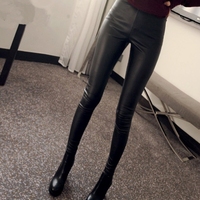 春秋季高腰紧身皮裤外穿薄款亮光PU仿皮打底裤显瘦小脚女裤大码潮