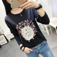 长袖t恤春天韩版女装小衫初中学生2017打底衫女孩单衣大童秋衣服