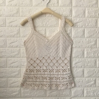 棉白色吊带衫女四季工厂直销2017新款OL手工钩织镂空绞花常规百搭