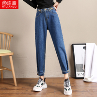 宽松牛仔裤女2019秋冬网红高腰韩版显瘦萝卜九分老爹裤子哈伦裤女