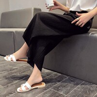 ins网红同款冰丝阔腿裤女夏针织垂坠感收腰韩版显瘦九分显高春夏