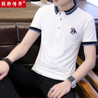 段郎传奇男人短袖t恤衬衫领潮流韩版青年体桖宽松夏季印花修身