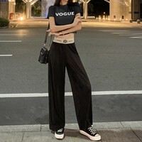 第二件10元 ins松紧腰阔腿裤休闲裤女生逛街出游裤子纸片人夏季c