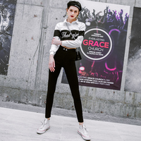 春秋冬款黑色双扣魔术裤瘦腿打底裤女士高腰紧身外穿小脚九分裤
