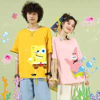 海绵宝宝联名短袖t恤女超火ins潮派大星半袖港风卡通涂鸦情侣装夏