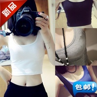 韩版吊带无袖背心女夏外穿打底纯色漏露肚脐高腰短款短装上衣T恤