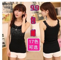 韩版修身女蕾丝花边烫钻背心 夏季女打底衫 百搭纯棉背心 包邮