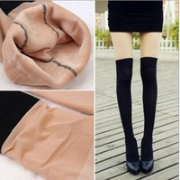 冬加绒双色假高筒大腿踩脚拼接丝袜过膝长筒加厚透肉打底裤袜子女