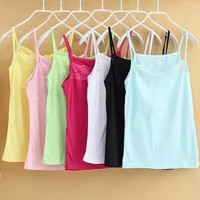 夏秋韩版蕾丝性感小吊带t恤背心多色全棉百搭花边打底衫女士吊带
