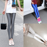2017春秋薄款打底裤女外穿光泽裤女九分修身亮面小脚裤女大码