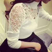 春秋新款女装长袖修身上衣打底衫女冬季加绒蕾丝衫女士短款T恤女