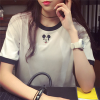 韩国短袖t恤女夏天女装宽松学生上衣刺绣卡通拼色休闲纯棉体恤潮