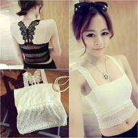 外穿夏季女莫代尔棉打底裹胸吊带背心后背蝴蝶结缕空抹胸中长短款