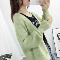 毛衣慵懒风宽松条纹纯色jk针织衫开衫女外套网红洋气牛油果绿