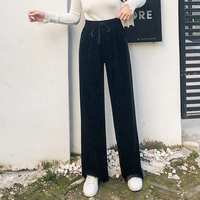 金丝绒阔腿裤女春秋2019新款拖地坠感垂感宽松直筒高腰休闲长裤子