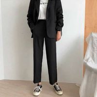 西装裤女直筒宽松2019新款春秋垂感阔腿裤女九分高腰黑色休闲裤子