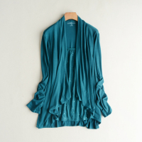 春秋新款V领单排扣网纱拼接七分袖圆点韩版气质女式短外套上衣D-4