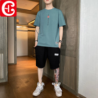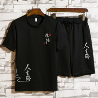 2020夏季男士两件套短袖t恤套装潮流休闲体恤圆领宽松夏天衣服潮