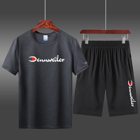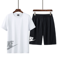夏季冰丝圆领运动短袖T恤休闲跑步宽松速干男士五分裤体恤男套装