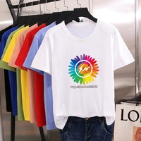 2020新款纯棉T恤女短袖宽松韩版学生半袖情侣ins夏装印花彩色雏菊