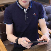 男士新款夏季短袖T恤夏时尚潮流男士衬衫领POLO衫宽松体恤男装