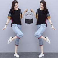 纯棉短袖T恤牛仔裤套装女夏装2020新款显瘦洋气减龄气质两件套