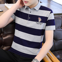 短袖T恤男士夏季新款韩版潮流男装潮牌ins翻领条纹个性半截袖体恤