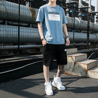 2020夏季男士短袖t恤套装半袖休闲韩版潮流帅气学生一套衣服搭配