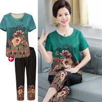 摩根凯萨2020新款妈妈套装短袖T恤奶奶装夏季中老年两件套夏装