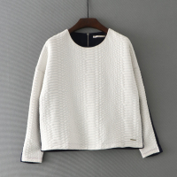 公子悦【百】秋季拼接t恤衫凹凸纹压邹花形卫衣撤柜女装(次)