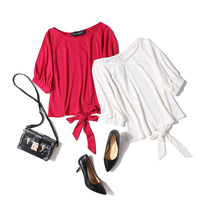 夏季新款T恤衫下摆打结弹力衫女简约宽松舒适套头上衣打底衫短Ma6