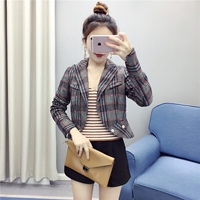 惠衣阁秋季棉质长袖短款西装外套韩版复古修身格子西服上衣女小码