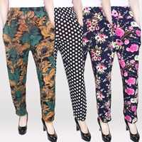 夏季中老年薄款冰丝九分灯笼裤长裤女宽松大码花裤阔腿哈伦裤批发