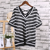 夏装针织条纹T恤 后背系带外穿短袖t恤女打底上衣内搭潮D/2-3