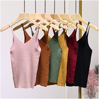 夏季欧美百搭V领针织吊带修身显瘦露背细肩带打底衫内搭小背心女