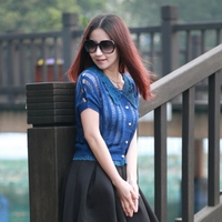 J3-2 天使店春夏装新款蕾丝钩花拼接圆领短袖针织衫女 38366