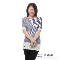 1Z春装 正品折扣蓝白条纹短袖修身剪标女装针织衫3650