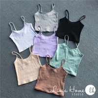 夏装新款修身显瘦百搭螺纹短款小吊带潮简约纯色学生打底背心上衣