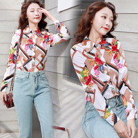 2020秋装新款复古chic港风印花衬衫女长袖港味慵懒韩版宽松衬衣