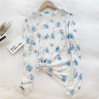 高品质~小花花防晒打底衫时尚内搭网纱冰丝上衣遮阳长袖圆领T恤女