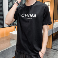 男士短袖T恤纯棉圆领男上衣服夏季宽松大码打底衫潮休闲印花半袖