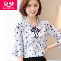 雪纺衫短袖2020夏装新款甜美喇叭袖碎花宽松印花小衫衬衫上衣服女