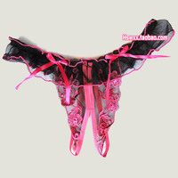 1条包邮性感内裤女透明露真人蕾丝t裤全透视实拍镂空火辣丁字裤