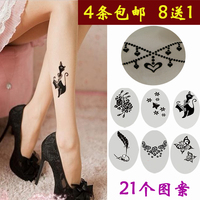 夏天假纹身丝袜原宿刺青连裤袜带图案提花纹超薄款透明打底袜子女