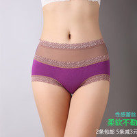 竹炭纤维女士高腰收腹内裤 莫代尔大码蕾丝胖mm裤头比纯棉全棉软