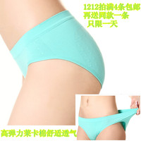 特价4条包邮送内裤 莱卡棉无缝中腰三角女内裤女士性感提臀透气点