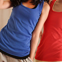 夏天宽吊带女士打底健美中款掉带宽松短款纯棉百搭U型工字小背心