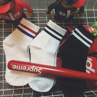 港风日系复古条纹横杠袜子原宿春短袜春秋中筒袜潮纯棉 运动男袜