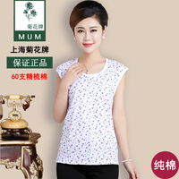 菊花牌夏季纯棉中老年人女汗衫无袖印花女内衣妈妈老太太宽松背心