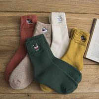 2018秋冬加厚袜子女 韩版可爱刺绣中筒袜保暖毛巾袜创意女袜棉袜